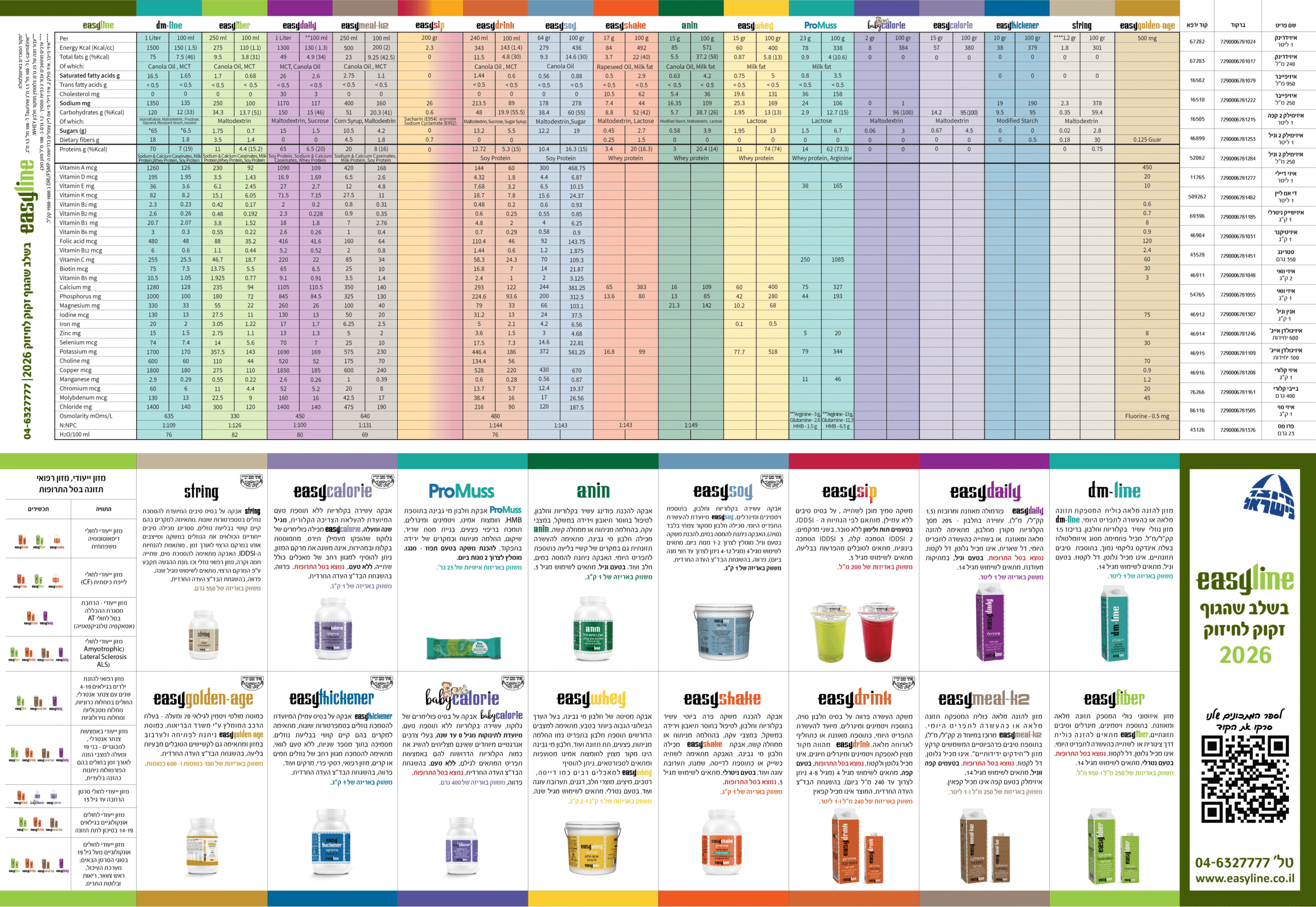 לפירוט על המוצרים החברה: תזונה רפואית (מזון רפואי), השלמת תזונה, אוכל נוזלי, תזונה לגיל השלישי, תוספי תזונה לספורטאים עברו לחנות אונליין.